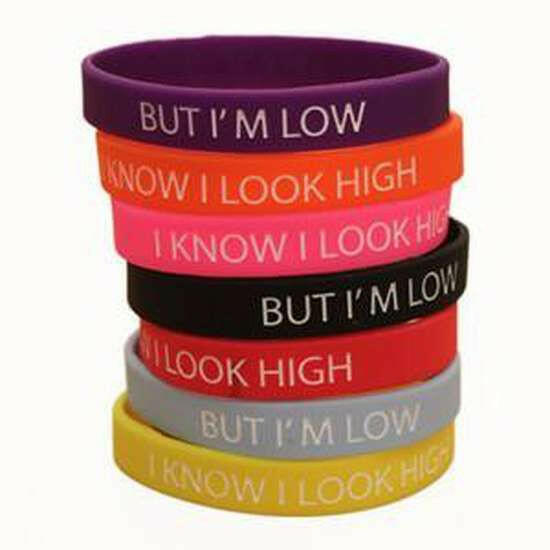 The I Know I Look High, But I'm Low wristband is available in 7 colours!